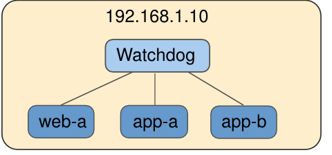 When running multiple instances of Resin on the same machine, one watchdog-manager typically handles all the instances. The server id will select which instance to start or stop. In this example, there is one web-tier server acting as a load-balancer and two app-tier servers handling the backend data, all on a single machine. A site might want multiple app-tier servers for more reliable maintenance and upgrades. While one server is down, traffic can be handled by a second server. The example uses default watchdog configuration from the standard resin.xml